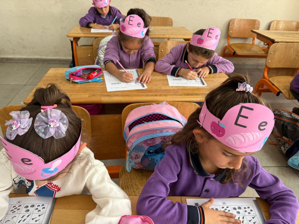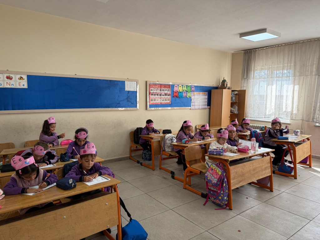 1/A sınıfı öğrencileri, öğretmenleri Nur Betül Yavuz eşliğinde E-e sesi öğretimi etkinliğini yaptılar.